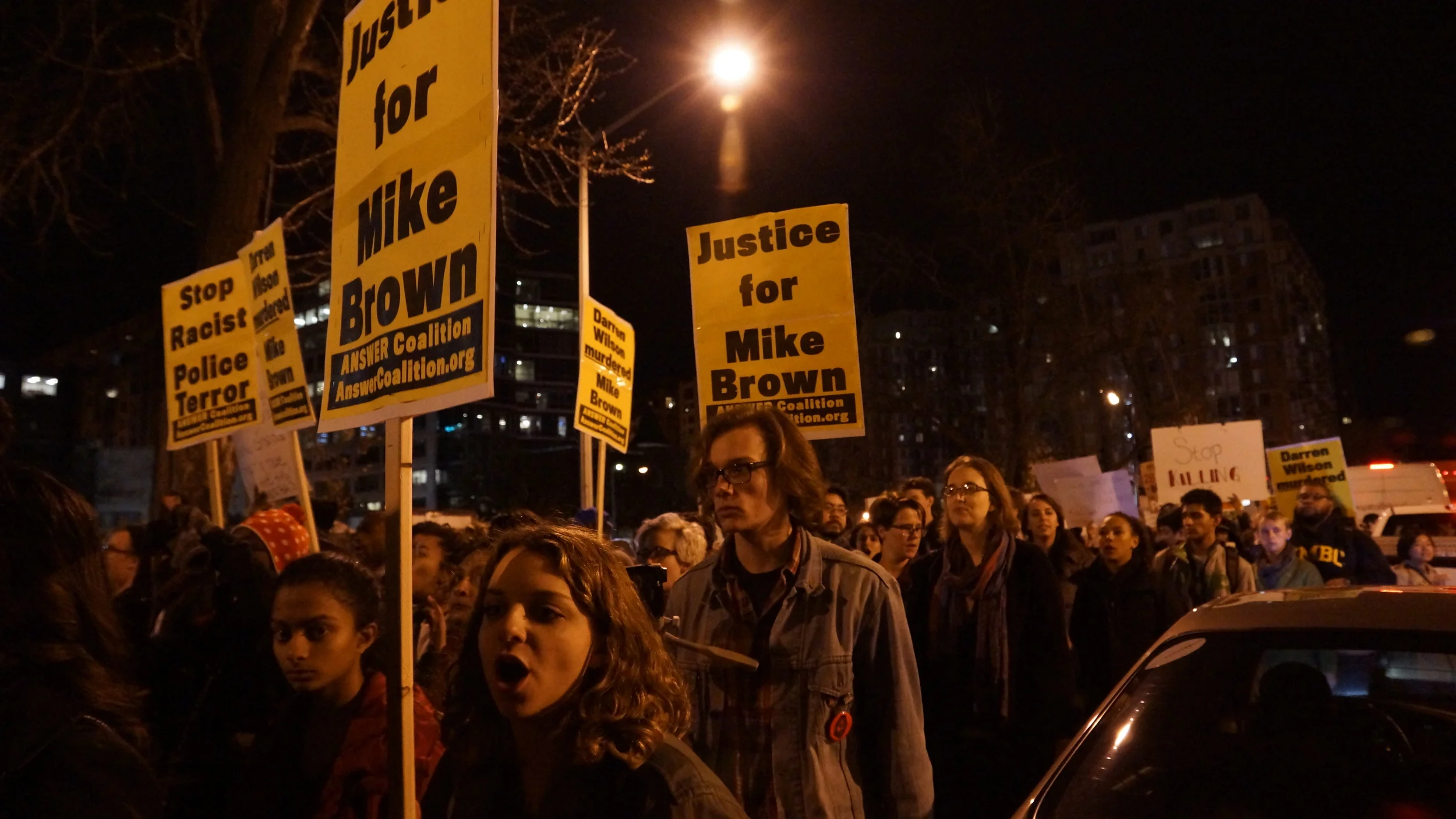 Protests sparked nationwide after grand jury ruled not to indict white police officer Darren Wilson after fatally shooting unarmed black teenager, Michael Brown. This series of images came out of the Nation's Capital the day after the ruling. A rally of more than 2000 people shut down the streets of Northwest Washington to protest racial profiling from law enforcement.